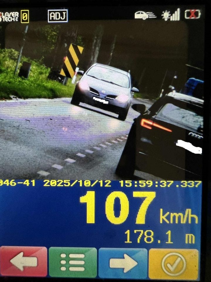 Podczas niedzielnej kontroli prędkości policjanci Wydziału Ruchu Drogowego zatrzymali do kontroli kierującego Nissanem Primera. Mężczyzna jechał z prędkością 107 km/h w miejscu, gdzie obowiązywało ograniczenie do 50 km/h.