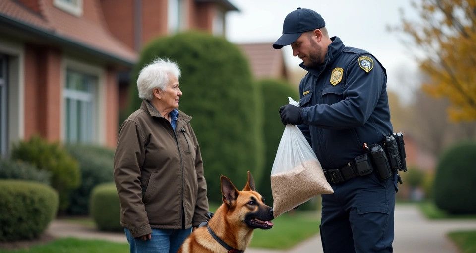 - Środki dowodowe: wskazania psa służbowego i wynik przeszukania mieszkania.